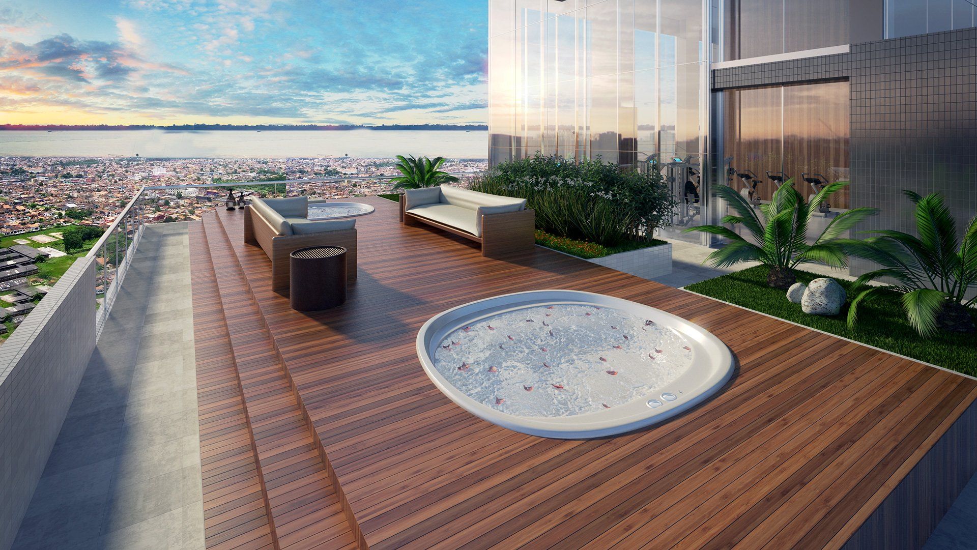 - 02 Banheiras de hidromassagem, na cobertura, com capacidade para 09 pessoas;